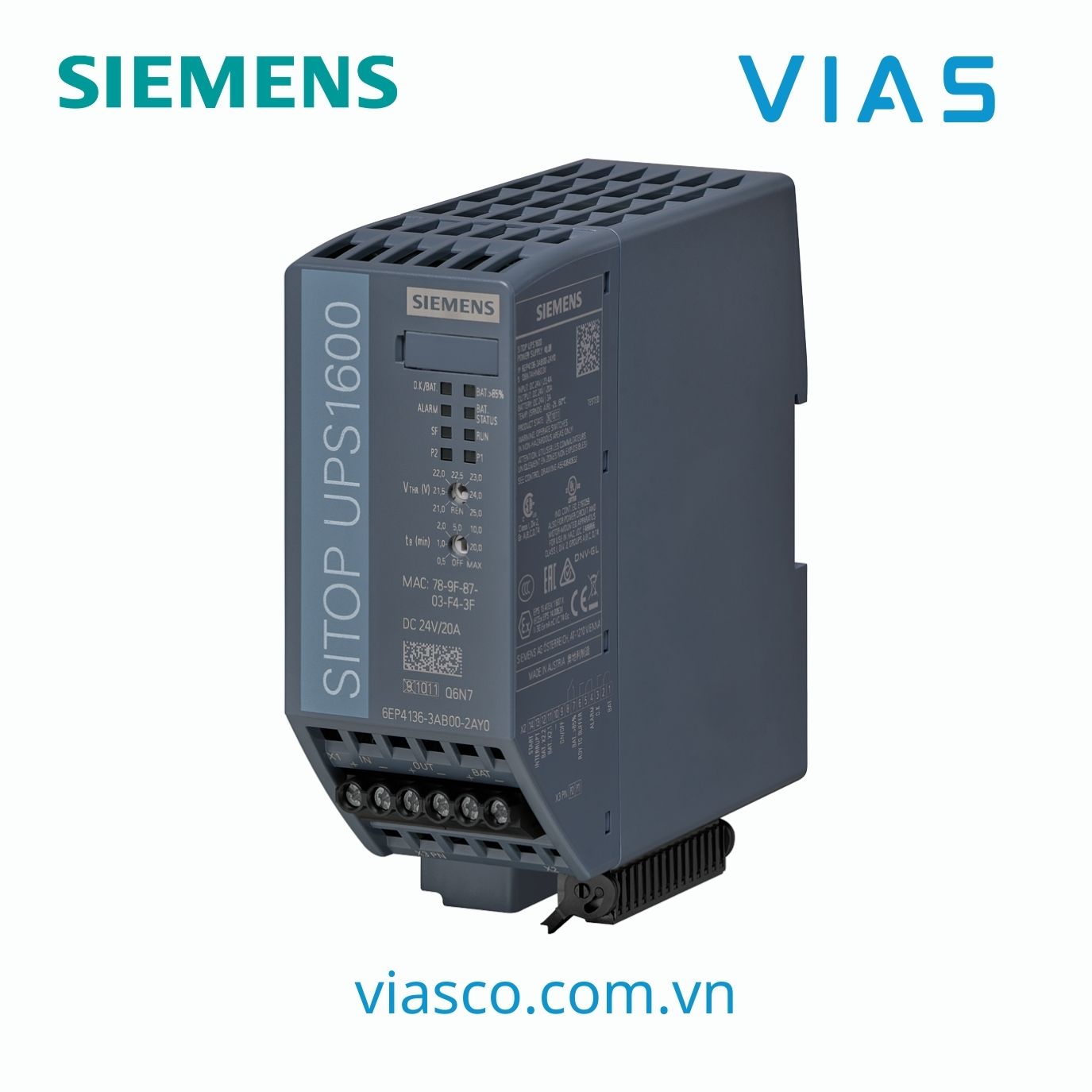 6EP4136-3AB00-2AY0 – Bộ nguồn SITOP UPS1600 20 A Ethernet/ PROFINET uninterruptible power supply with Ethernet / PROFINET interface / OPC UA server / web server input: 24 V DC output: 24 V DC/20 A
